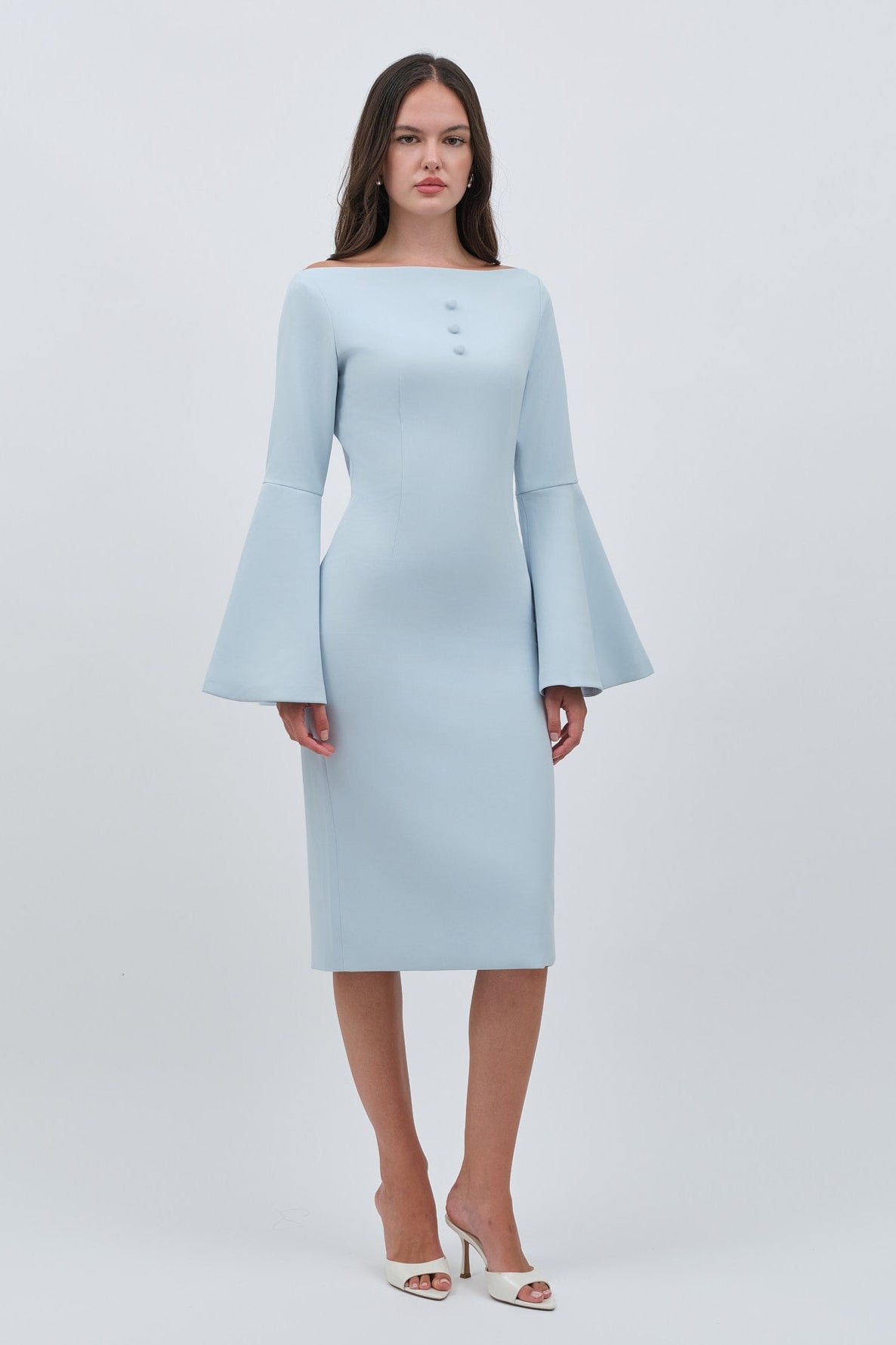 A refined statement piece, this dress is defined by its elegantly flowy sleeves, creating a sense of movement and allure. Crafted for special occasions, it exudes sophistication while maintaining a graceful femininity. Designed to captivate, it is the perfect choice for evening events and celebrations.